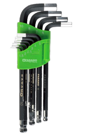 Set 10 chiavi maschio a L con impronta esagonale serie LUNGA FASANO FG 139/C